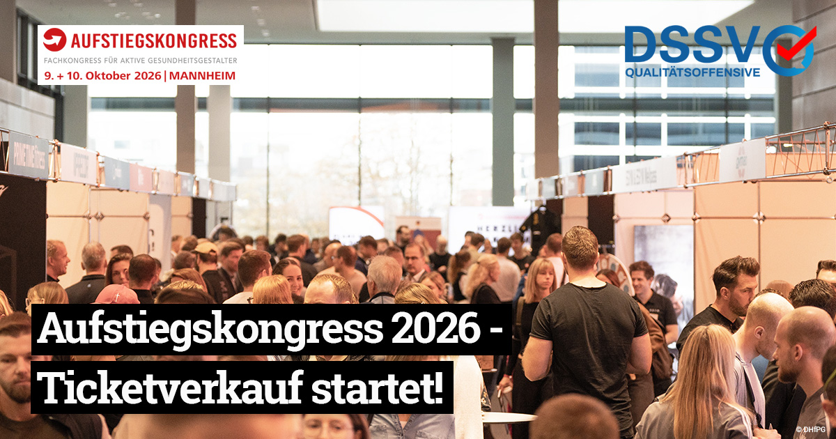 Der Aufstiegskongress zählt zu den wichtigsten Branchen-Events der Fitness- und Gesundheitsbranche. Veranstaltet wird er von der Deutschen Hochschule für Prävention und Gesundheitsmanagement (DHfPG) und der BSA-Akademie. Auch 2026 findet der Kongress wieder im m:con Congress Center Rosengarten in Mannheim statt.